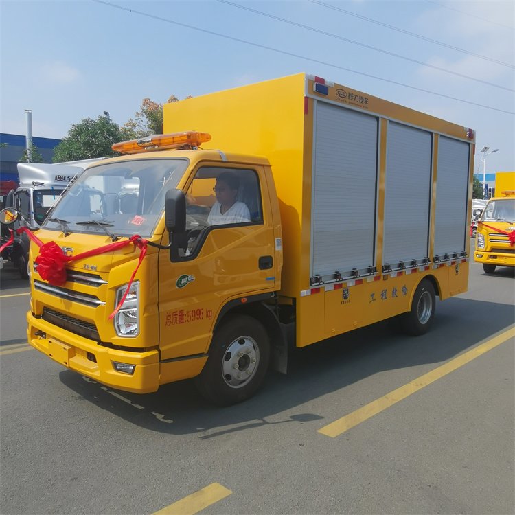 江鈴救險車主要配置:專用裝置為發電機組,空壓機,電焊機以及應急搶險搶修時必備的光源,氣源,電源設備等工具。主要用于搶險救災中的應急電力支援,排除積水和提供專用救險工具等。