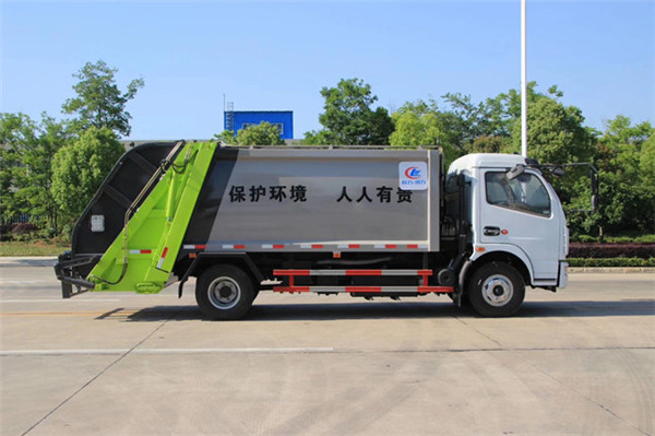 壓縮式垃圾車采用機電液一體化技術(shù),采用機、電、液聯(lián)合自動控制系統(tǒng),通過車廂、填裝器、推鏟等專用裝置,實現(xiàn)垃圾裝入、壓碎或壓扁、強力裝填,最后將垃圾壓實擠入車廂,運到目的地進行自動推動卸載。垃圾收集方式簡便、高效、具有反復壓縮及蠕動壓縮等功能,壓縮比高,裝載質(zhì)量大,作業(yè)自動化,動力性、環(huán)保性好,整車利用效率高,壓縮車整車為全密封型,自行壓縮、自行傾倒、壓縮過程中的污水全部進入污水廂,較為徹底的解決了壓縮車運輸過程中的二次污染的問題。