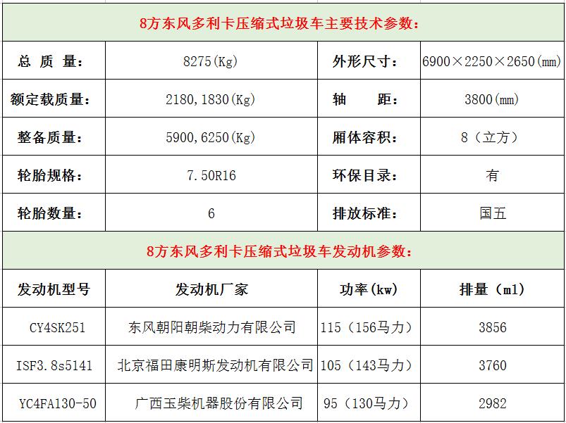8方壓縮式垃圾車技術參數:
