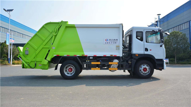 采用機、電、液聯合自動控制系統,通過車廂、填裝器、推鏟等專用裝置,實現垃圾裝入、壓碎或壓扁、強力裝填,最后將垃圾壓實擠入車廂,運到目的地進行自動推動卸載。垃圾收集方式簡便、高效、具有反復壓縮及蠕動壓縮等功能,壓縮比高,裝載質量大,作業自動化,動力性、環保性好,整車利用效率高,壓縮垃圾車車整車為全密封型,自行壓縮、自行傾倒、壓縮過程中的污水全部進入污水廂,較為徹底的解決了壓縮車運輸過程中的二次污染的問題。