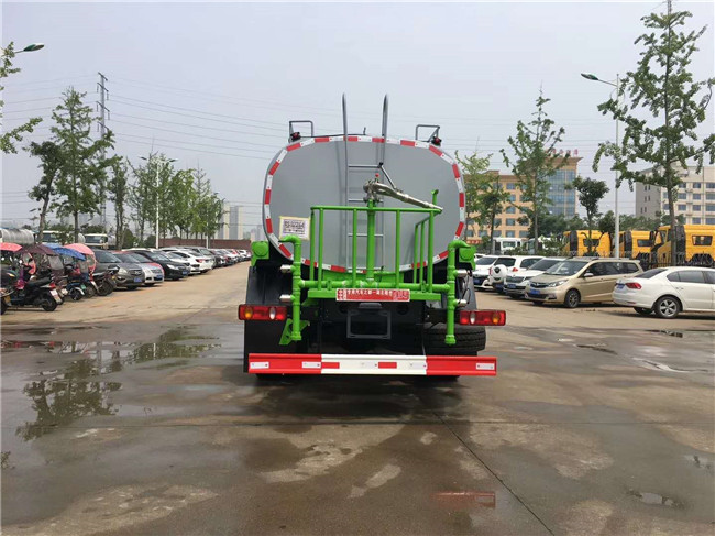 灑水車一車多用!采用大流量水泵,大通徑球閥、灑水功能前沖、后灑、側(cè)噴、工作平臺(tái)帶高炮(可調(diào)節(jié)成霧狀、直柱狀)、可泵進(jìn)泵出、罐體兩側(cè)圓形炮筒、帶兩根抽水軟管。灑水車基礎(chǔ)知識(shí):灑水車水流量是多少?主要取決于車輛上裝載的灑水泵流量、以及噴水頭的數(shù)量、還有就是灑水車的發(fā)動(dòng)機(jī)的油門。