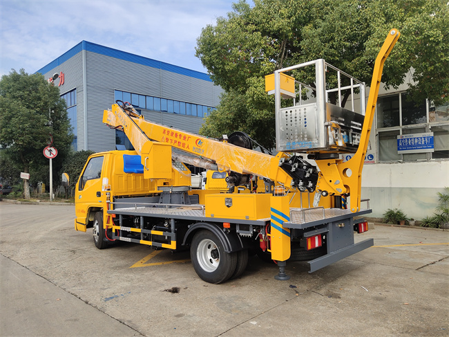 (底盤采用江鈴原廠五十鈴116馬力發(fā)動(dòng)機(jī),國六排放標(biāo)準(zhǔn),上裝最大作業(yè)高度23米,加裝液壓卷盤可吊500KG,也可以替換電動(dòng)卷揚(yáng)機(jī),工作框加裝45公分寬度折疊版,方便作業(yè)工具擺放,小臂頭加裝小飛臂,增加吊裝高度以及跨度。小飛臂以及液壓卷揚(yáng)機(jī)均可隨時(shí)安裝,方便拆卸。大臂油漆升級(jí)烤漆,五年不褪色。)